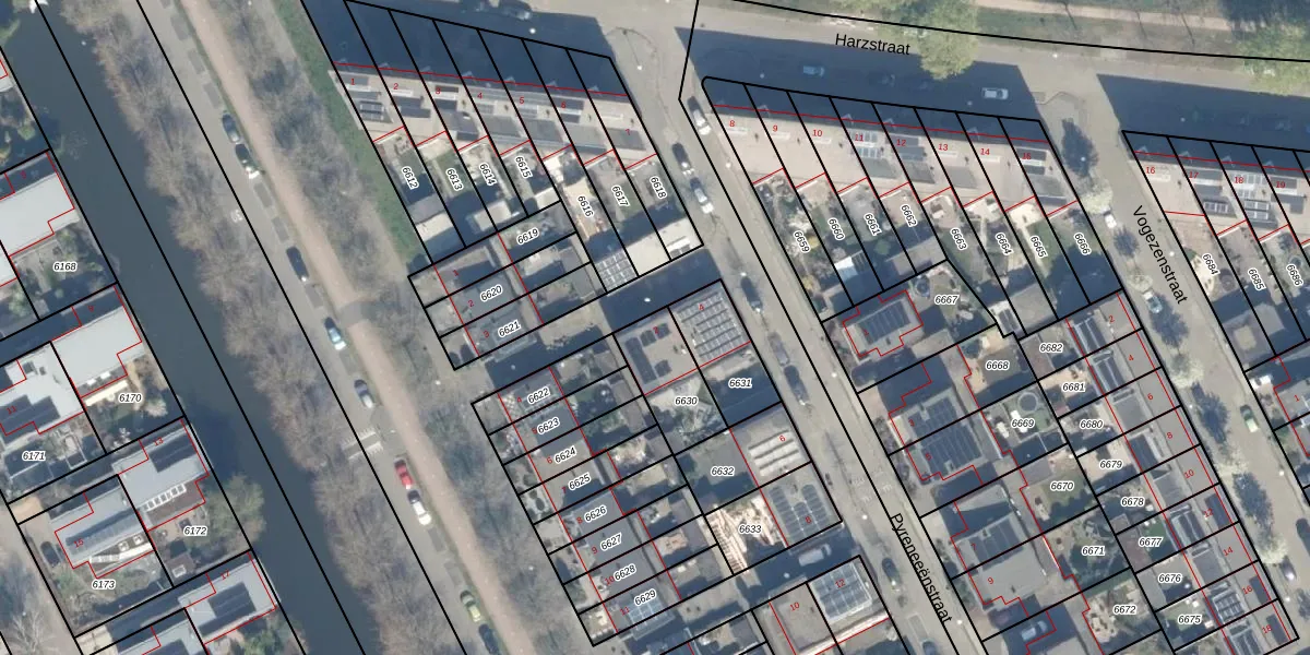Gebruik de zoekbalk of klik op een perceel voor informatie over de adressen binnen dit perceel.