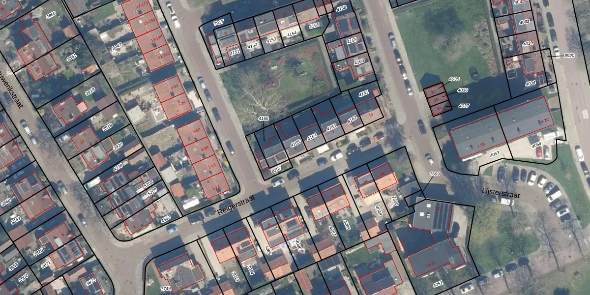 Gebruik de zoekbalk of klik op een perceel voor informatie over de adressen binnen dit perceel.
