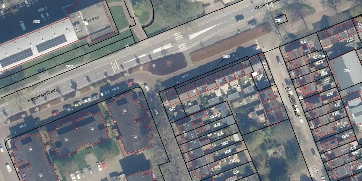 Rembrandtlaan 107 is gelegen op kadastraal perceel WDN01B8440. Deze kadastrale aanduiding is uniek en wordt gebruikt door het Kadaster om eigendomsrechten en andere zakelijke rechten vast te leggen. Het perceel maakt onderdeel uit van de kadastrale gemeente Woerden.