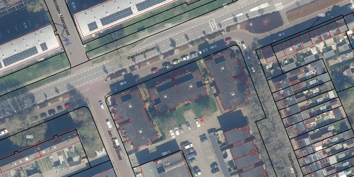 Het perceel waarop Rembrandtlaan 131 staat heeft een oppervlakte van 6616 m². Dit is een zeer groot perceel. De perceeloppervlakte wordt geregistreerd door het Kadaster. Gedetailleerde informatie over de maten van dit perceel kunt u vinden in het rapport Kadastrale kaart met maatvoering van Rembrandtlaan 131.