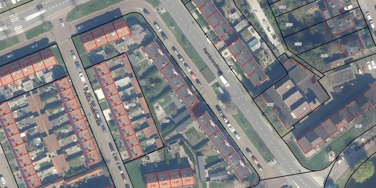 Rembrandtlaan 21 is gelegen op kadastraal perceel WDN01B8057. Deze kadastrale aanduiding is uniek en wordt gebruikt door het Kadaster om eigendomsrechten en andere zakelijke rechten vast te leggen. Het perceel maakt onderdeel uit van de kadastrale gemeente Woerden.