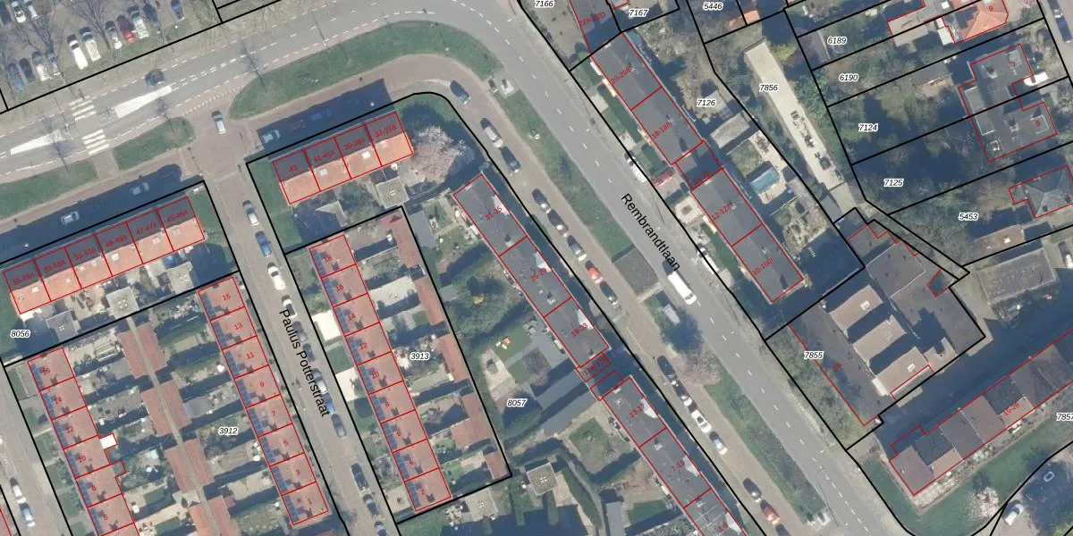 Het perceel waarop Rembrandtlaan 25 staat heeft een oppervlakte van 3920 m². Dit is een zeer groot perceel. De perceeloppervlakte wordt geregistreerd door het Kadaster. Gedetailleerde informatie over de maten van dit perceel kunt u vinden in het rapport Kadastrale kaart met maatvoering van Rembrandtlaan 25.