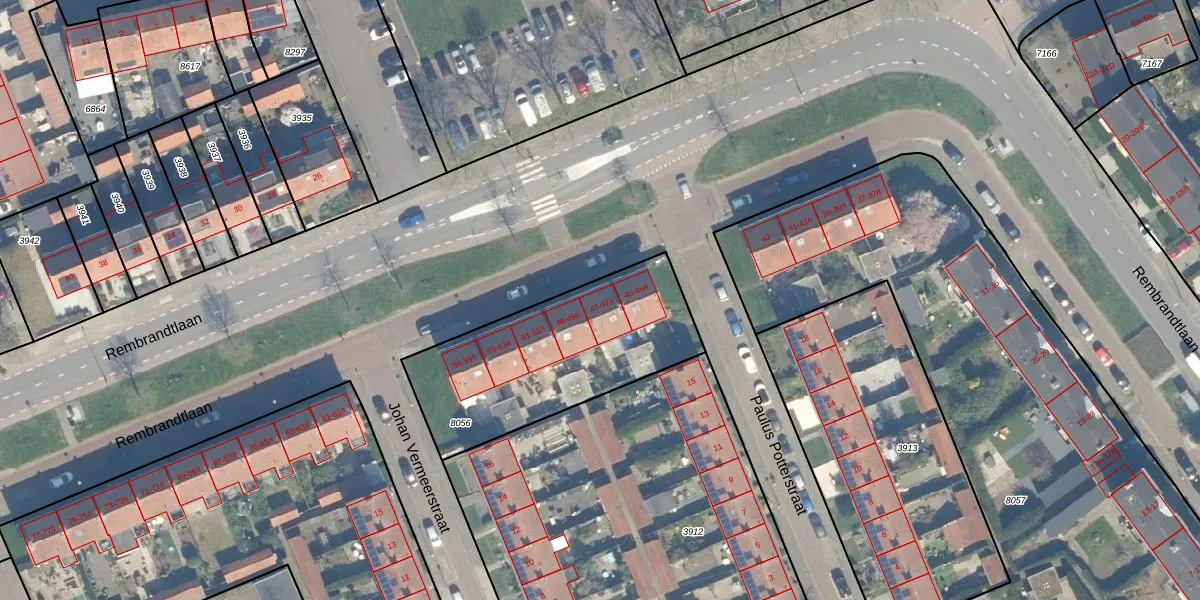 Het perceel waarop Rembrandtlaan 47 staat heeft een oppervlakte van 875 m². Dit is een groot perceel. De perceeloppervlakte wordt geregistreerd door het Kadaster. Gedetailleerde informatie over de maten van dit perceel kunt u vinden in het rapport Kadastrale kaart met maatvoering van Rembrandtlaan 47.