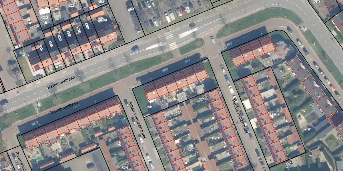 Het perceel waarop Rembrandtlaan 51-I staat heeft een oppervlakte van 875 m². Dit is een groot perceel. De perceeloppervlakte wordt geregistreerd door het Kadaster. Gedetailleerde informatie over de maten van dit perceel kunt u vinden in het rapport Kadastrale kaart met maatvoering van Rembrandtlaan 51-I.