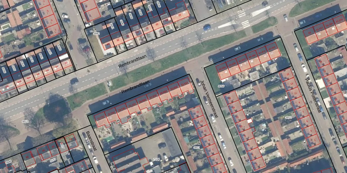 Het perceel waarop Rembrandtlaan 63 staat heeft een oppervlakte van 2900 m². Dit is een zeer groot perceel. De perceeloppervlakte wordt geregistreerd door het Kadaster. Gedetailleerde informatie over de maten van dit perceel kunt u vinden in het rapport Kadastrale kaart met maatvoering van Rembrandtlaan 63.