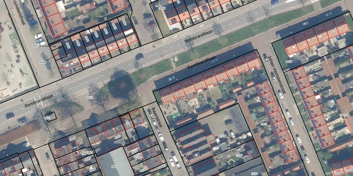 Het perceel waarop Rembrandtlaan 75 staat heeft een oppervlakte van 2900 m². Dit is een zeer groot perceel. De perceeloppervlakte wordt geregistreerd door het Kadaster. Gedetailleerde informatie over de maten van dit perceel kunt u vinden in het rapport Kadastrale kaart met maatvoering van Rembrandtlaan 75.