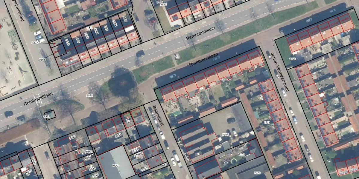 Het perceel waarop Rembrandtlaan 75-I staat heeft een oppervlakte van 2900 m². Dit is een zeer groot perceel. De perceeloppervlakte wordt geregistreerd door het Kadaster. Gedetailleerde informatie over de maten van dit perceel kunt u vinden in het rapport Kadastrale kaart met maatvoering van Rembrandtlaan 75-I.