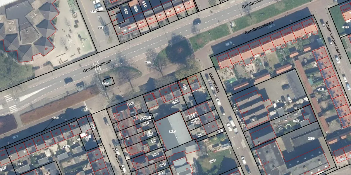 Het perceel waarop Rembrandtlaan 83 staat heeft een oppervlakte van 503 m². Dit is een groot perceel. De perceeloppervlakte wordt geregistreerd door het Kadaster. Gedetailleerde informatie over de maten van dit perceel kunt u vinden in het rapport Kadastrale kaart met maatvoering van Rembrandtlaan 83.