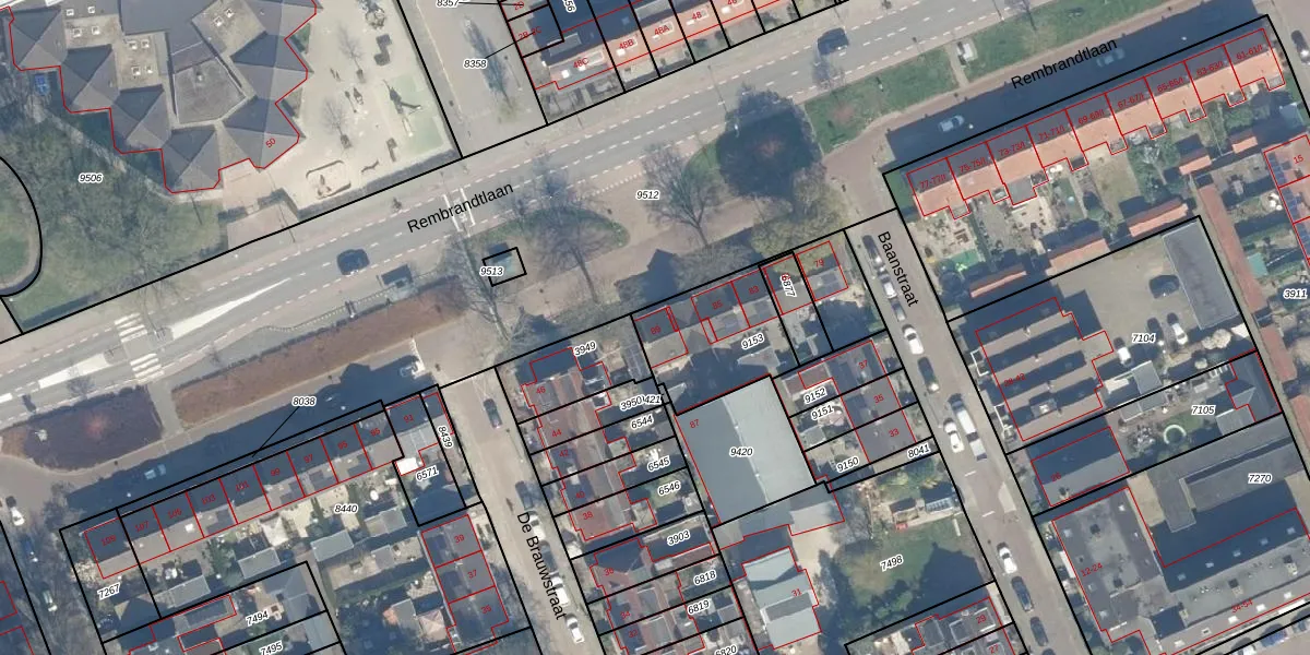 Rembrandtlaan 89 is gelegen op kadastraal perceel WDN01B9153. Deze kadastrale aanduiding is uniek en wordt gebruikt door het Kadaster om eigendomsrechten en andere zakelijke rechten vast te leggen. Het perceel maakt onderdeel uit van de kadastrale gemeente Woerden.
