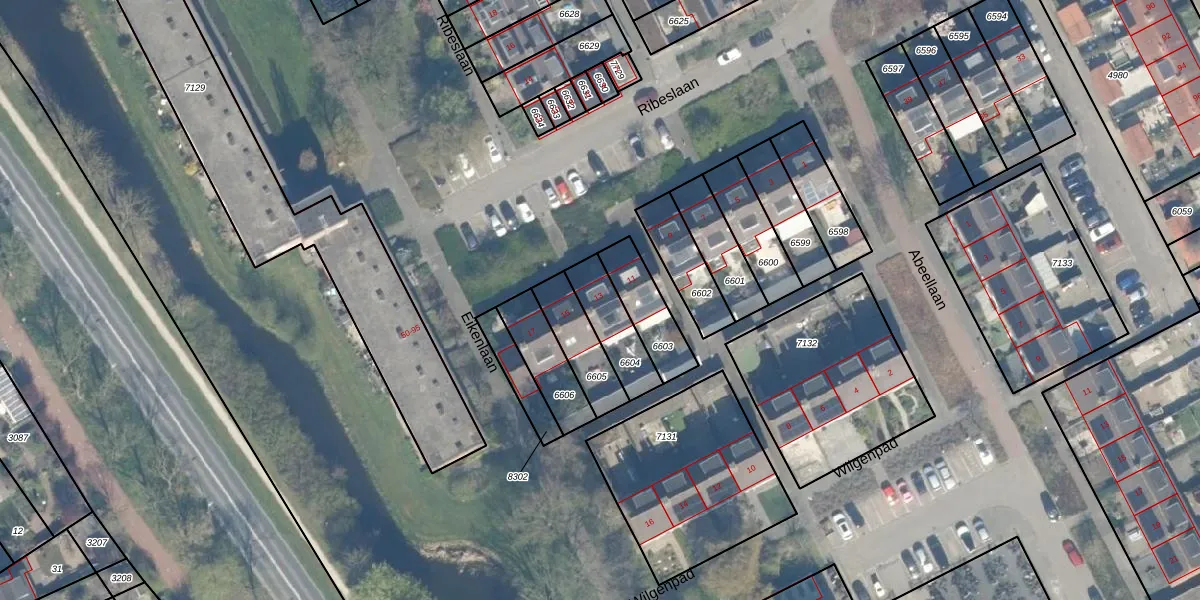 Ribeslaan 13 is gelegen op kadastraal perceel WDN01B6604. Deze kadastrale aanduiding is uniek en wordt gebruikt door het Kadaster om eigendomsrechten en andere zakelijke rechten vast te leggen. Het perceel maakt onderdeel uit van de kadastrale gemeente Woerden.