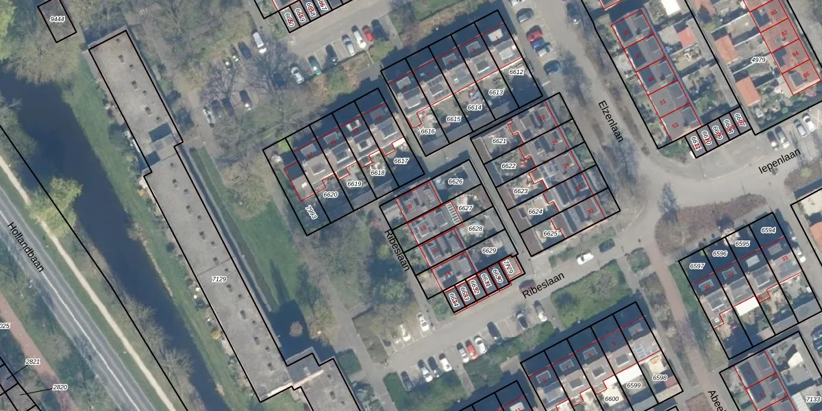 Ribeslaan 20 is gelegen op kadastraal perceel WDN01B6626. Deze kadastrale aanduiding is uniek en wordt gebruikt door het Kadaster om eigendomsrechten en andere zakelijke rechten vast te leggen. Het perceel maakt onderdeel uit van de kadastrale gemeente Woerden.