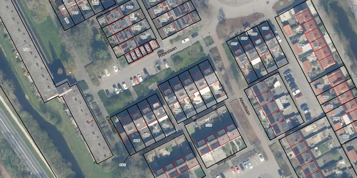 Ribeslaan 7 is gelegen op kadastraal perceel WDN01B6601. Deze kadastrale aanduiding is uniek en wordt gebruikt door het Kadaster om eigendomsrechten en andere zakelijke rechten vast te leggen. Het perceel maakt onderdeel uit van de kadastrale gemeente Woerden.