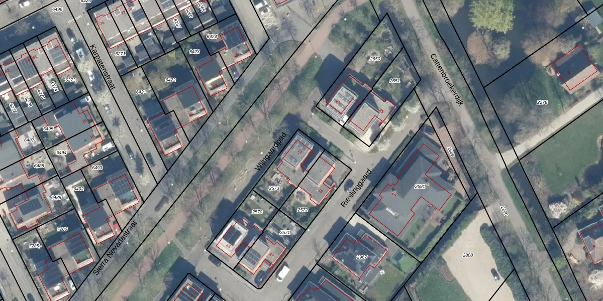 Het perceel waarop Rieslinggaard 21 staat heeft een oppervlakte van 284 m². Dit is een middelgroot perceel. De perceeloppervlakte wordt geregistreerd door het Kadaster. Gedetailleerde informatie over de maten van dit perceel kunt u vinden in het rapport Kadastrale kaart met maatvoering van Rieslinggaard 21.