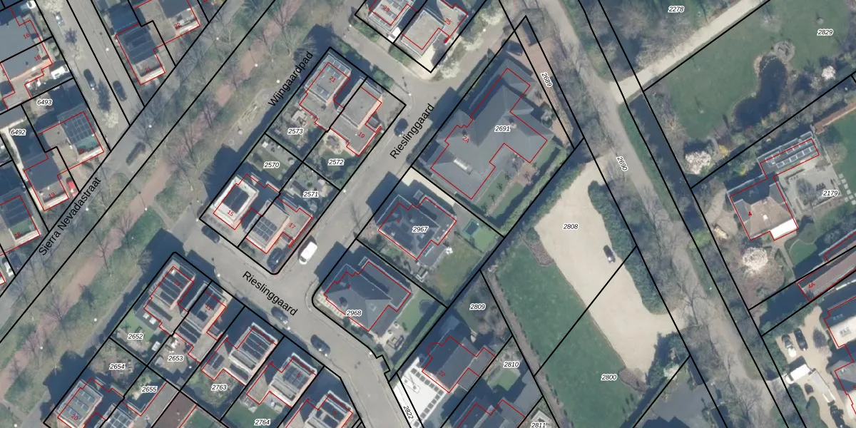 Het perceel waarop Rieslinggaard 4 staat heeft een oppervlakte van 580 m². Dit is een groot perceel. De perceeloppervlakte wordt geregistreerd door het Kadaster. Gedetailleerde informatie over de maten van dit perceel kunt u vinden in het rapport Kadastrale kaart met maatvoering van Rieslinggaard 4.