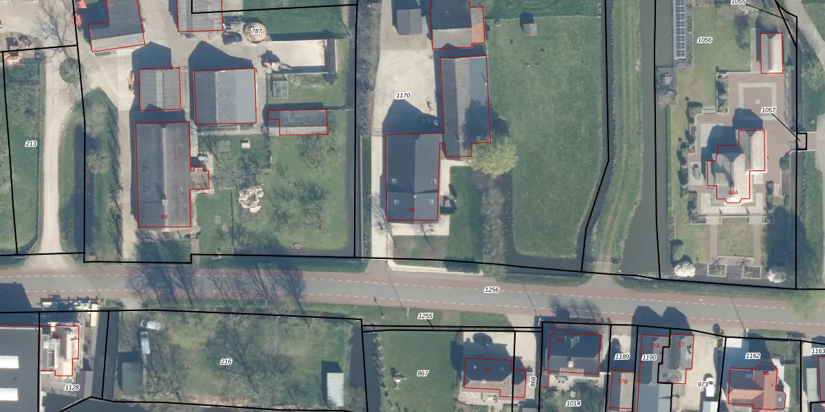 Het perceel waarop Rietveld 66 staat heeft een oppervlakte van 5900 m². Dit is een zeer groot perceel. De perceeloppervlakte wordt geregistreerd door het Kadaster. Gedetailleerde informatie over de maten van dit perceel kunt u vinden in het rapport Kadastrale kaart met maatvoering van Rietveld 66.