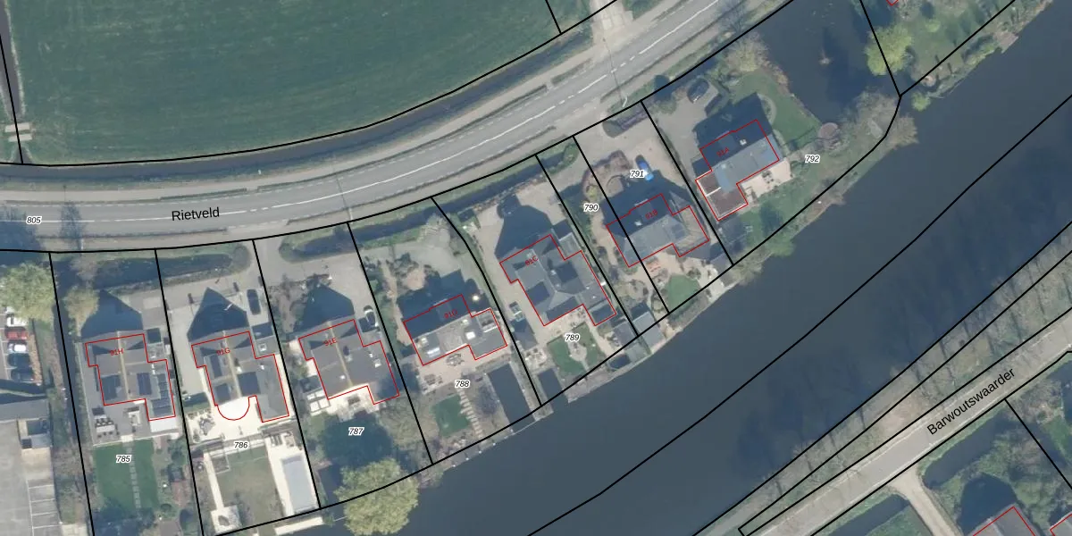 Het adres ligt op het perceel RVD00-A-789, dat zich in de kadastrale gemeente Rietveld bevindt. Het perceel is 875 m² groot. Dat is kleiner dan de gemiddelde perceeloppervlakte in Rietveld, dat op 6756,97 m² ligt. Het kleinste perceel in de kadastrale gemeente is 0 m² groot. De grootste perceeloppervlakte is 15,1 ha. Op het perceel bevinden zich geen andere adressen. In de Basisregistratie Kadaster (BRK) werden de grenzen van het perceel geregistreerd op 09-02-1999.