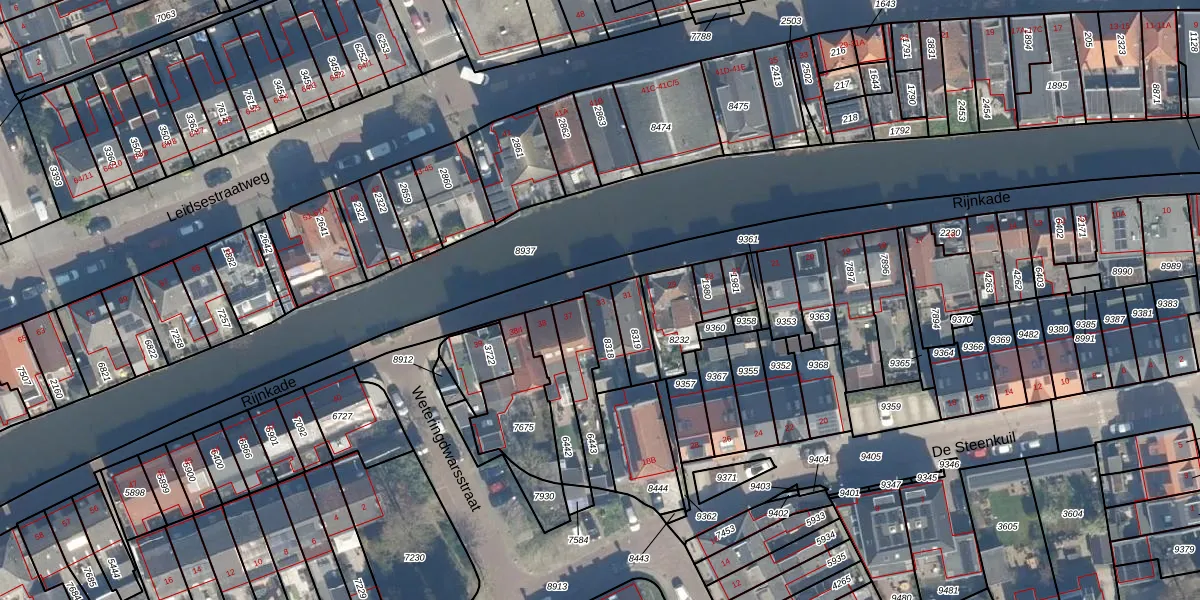Rijnkade 33 is gelegen op kadastraal perceel WDN01B8318. Deze kadastrale aanduiding is uniek en wordt gebruikt door het Kadaster om eigendomsrechten en andere zakelijke rechten vast te leggen. Het perceel maakt onderdeel uit van de kadastrale gemeente Woerden.