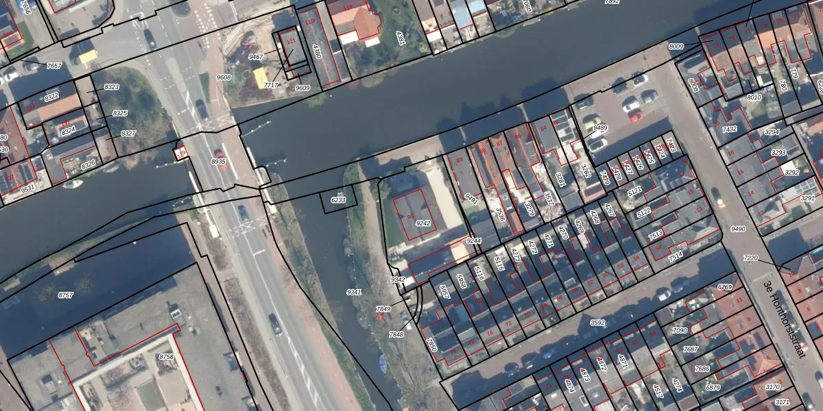 Gebruik de zoekbalk of klik op een perceel voor informatie over de adressen binnen dit perceel.