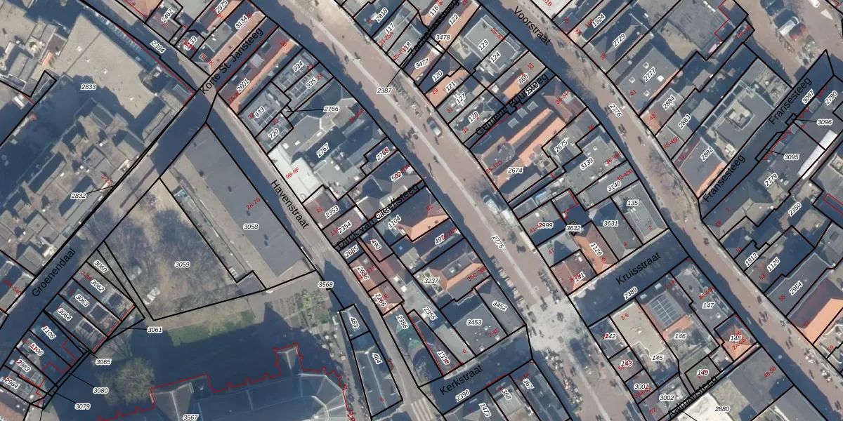 Het adres ligt op het perceel WDN01-C-1104, dat zich in de kadastrale gemeente Woerden bevindt. Het perceel is 131 m² groot. Dat is kleiner dan de gemiddelde perceeloppervlakte in Woerden, dat op 1325,81 m² ligt. Het kleinste perceel in de kadastrale gemeente is 0 m² groot. De grootste perceeloppervlakte is 55,0 ha. Op het perceel liggen in totaal 3 adressen. De laatste wijziging in het de Basisregistratie Kadaster (BRK) was op 14-12-1999.