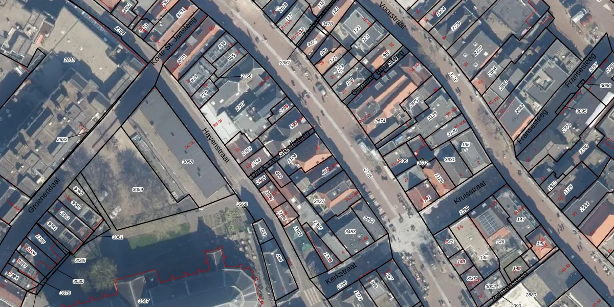 Het adres ligt op het perceel WDN01-C-1104, dat zich in de kadastrale gemeente Woerden bevindt. Het perceel is 131 m² groot. Dat is kleiner dan de gemiddelde perceeloppervlakte in Woerden, dat op 1325,81 m² ligt. Het kleinste perceel in de kadastrale gemeente is 0 m² groot. De grootste perceeloppervlakte is 55,0 ha. Op het perceel liggen in totaal 3 adressen. De huidige grenzen van het perceel zijn digitaal in de Basisregistratie Kadaster (BRK) geregistreerd op 14-12-1999.