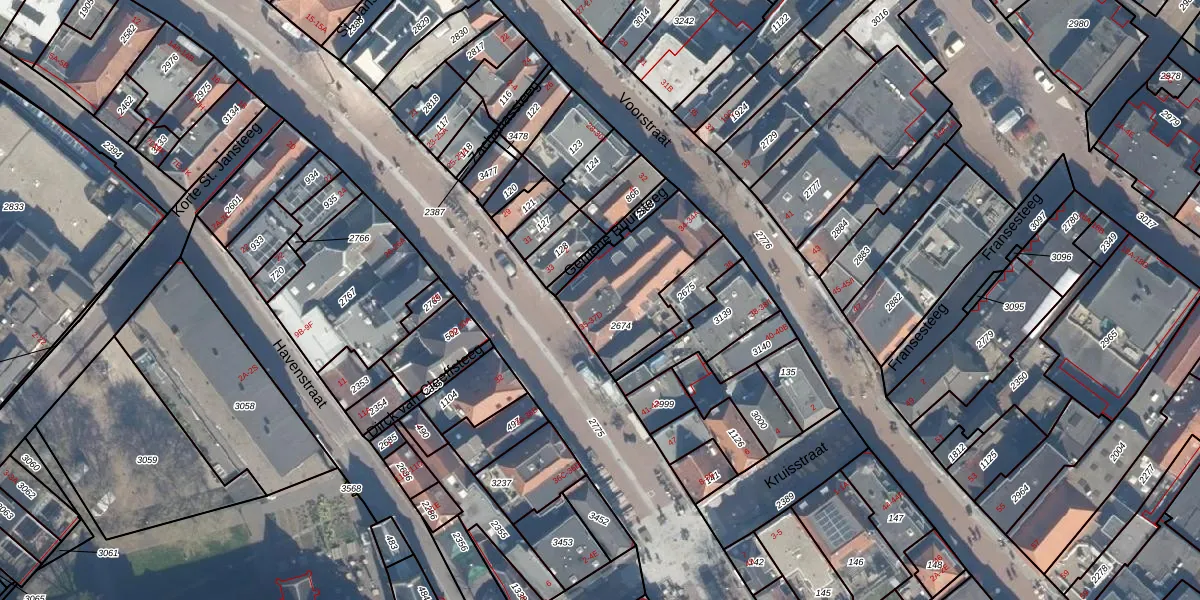 Het perceel waarop het adres ligt is WDN01-C-2674. De afkorting 'WDN01' staat voor kadastrale gemeente Woerden. Het perceel is 400 m² groot. Dat is kleiner dan de gemiddelde perceeloppervlakte in Woerden, dat op 1326,34 m² ligt. De grootste perceeloppervlakte in de kadastrale gemeente is 55,0 ha. De kleinste oppervlakte bedraagt 0 m². Op het perceel liggen in totaal 13 adressen. De laatste wijziging in het de Basisregistratie Kadaster (BRK) was op 14-12-1999.