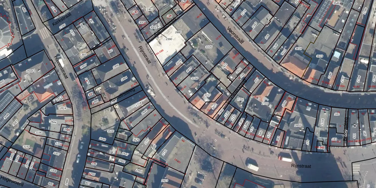 Rijnstraat 65 is gelegen op kadastraal perceel WDN01C3156. Deze kadastrale aanduiding is uniek en wordt gebruikt door het Kadaster om eigendomsrechten en andere zakelijke rechten vast te leggen. Het perceel maakt onderdeel uit van de kadastrale gemeente Woerden.
