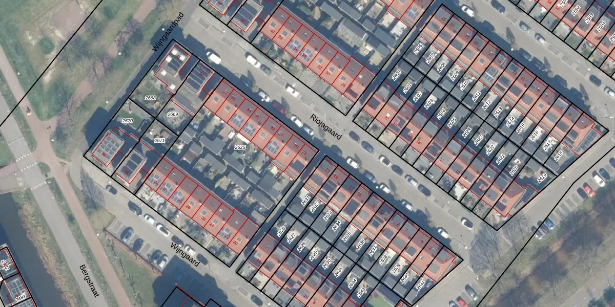 Het perceel waarop Riojagaard 23 staat heeft een oppervlakte van 1870 m². Dit is een zeer groot perceel. De perceeloppervlakte wordt geregistreerd door het Kadaster. Gedetailleerde informatie over de maten van dit perceel kunt u vinden in het rapport Kadastrale kaart met maatvoering van Riojagaard 23.