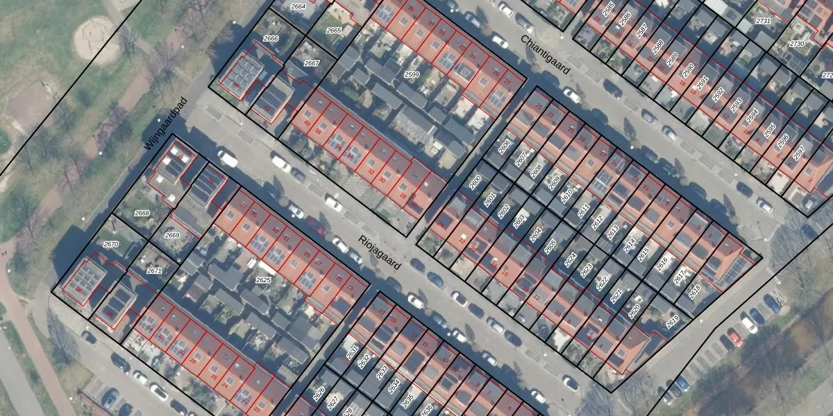 Het perceel waarop Riojagaard 26 staat heeft een oppervlakte van 1865 m². Dit is een zeer groot perceel. De perceeloppervlakte wordt geregistreerd door het Kadaster. Gedetailleerde informatie over de maten van dit perceel kunt u vinden in het rapport Kadastrale kaart met maatvoering van Riojagaard 26.