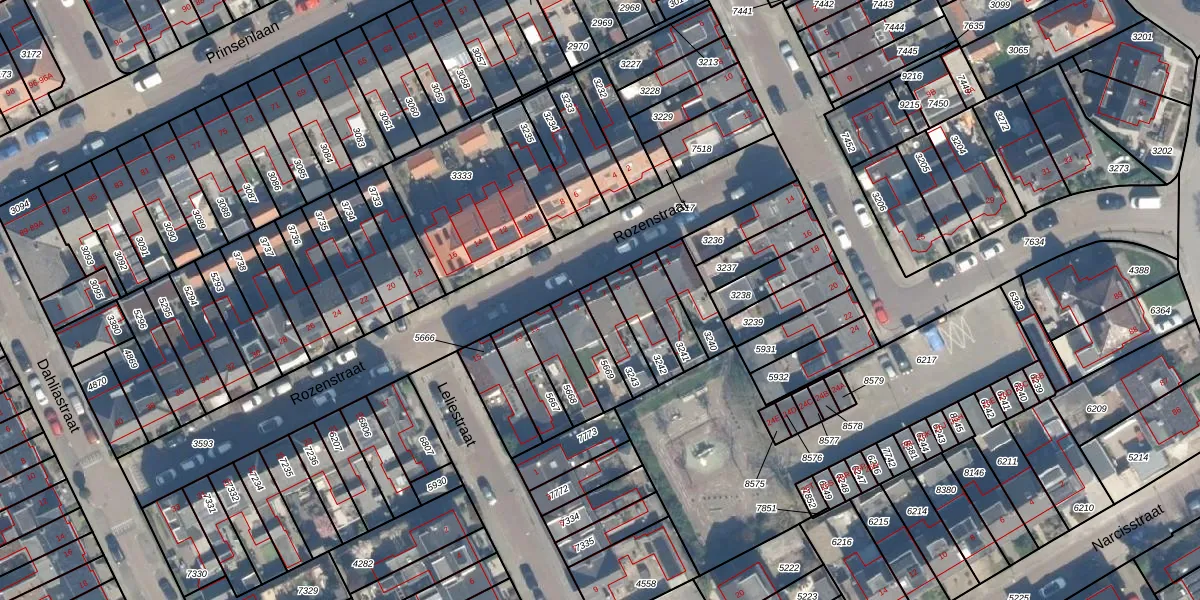 Het perceel waarop Rozenstraat 7 staat heeft een oppervlakte van 98 m². Dit is een klein perceel. De perceeloppervlakte wordt geregistreerd door het Kadaster. Gedetailleerde informatie over de maten van dit perceel kunt u vinden in het rapport Kadastrale kaart met maatvoering van Rozenstraat 7.