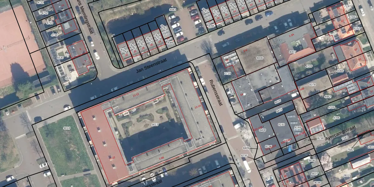 Rubensstraat 17 is gelegen op kadastraal perceel WDN01B9013. Deze kadastrale aanduiding is uniek en wordt gebruikt door het Kadaster om eigendomsrechten en andere zakelijke rechten vast te leggen. Het perceel maakt onderdeel uit van de kadastrale gemeente Woerden.