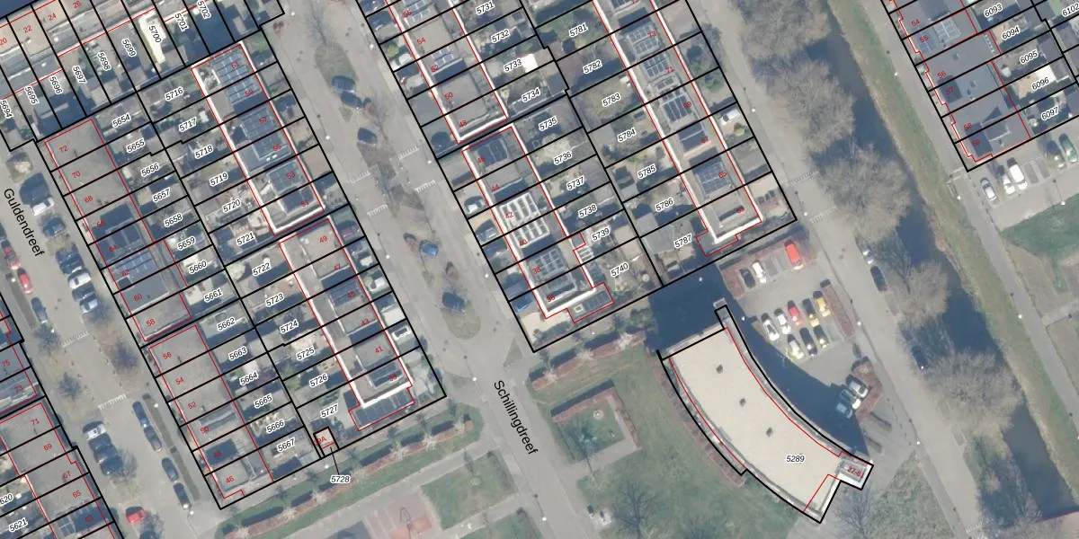 Gebruik de zoekbalk of klik op een perceel voor informatie over de adressen binnen dit perceel.