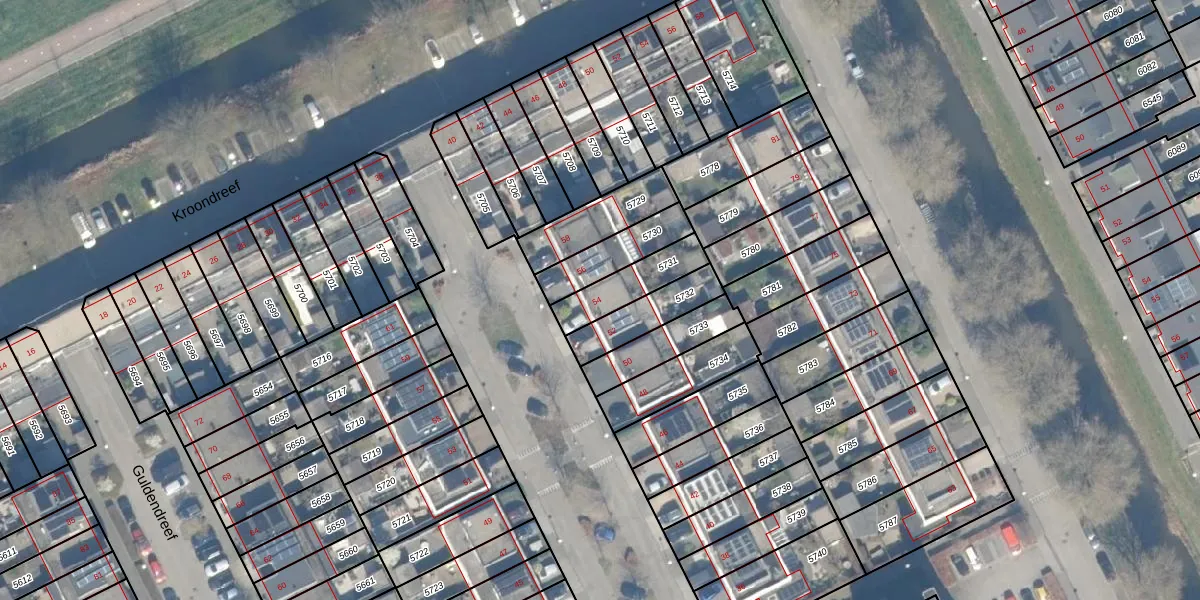 Gebruik de zoekbalk of klik op een perceel voor informatie over de adressen binnen dit perceel.