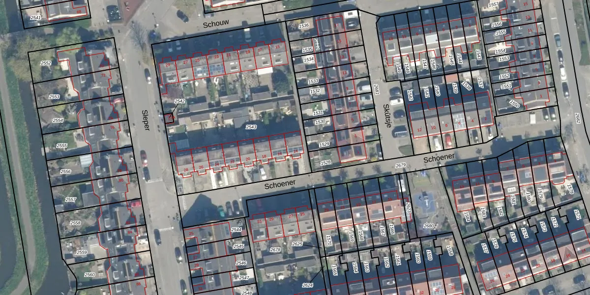 Het perceel waarop Schoener 14 staat heeft een oppervlakte van 2400 m². Dit is een zeer groot perceel. De perceeloppervlakte wordt geregistreerd door het Kadaster. Gedetailleerde informatie over de maten van dit perceel kunt u vinden in het rapport Kadastrale kaart met maatvoering van Schoener 14.