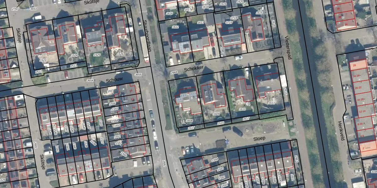 Gebruik de zoekbalk of klik op een perceel voor informatie over de adressen binnen dit perceel.
