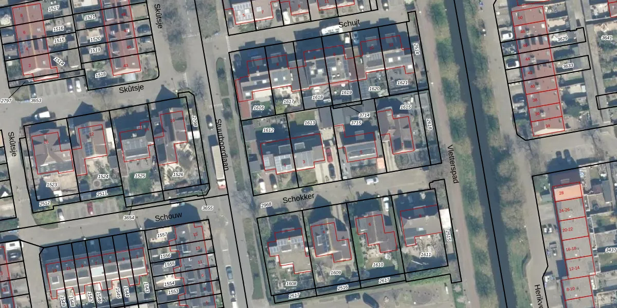 Gebruik de zoekbalk of klik op een perceel voor informatie over de adressen binnen dit perceel.