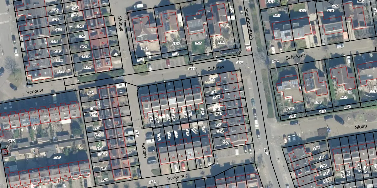 Gebruik de zoekbalk of klik op een perceel voor informatie over de adressen binnen dit perceel.