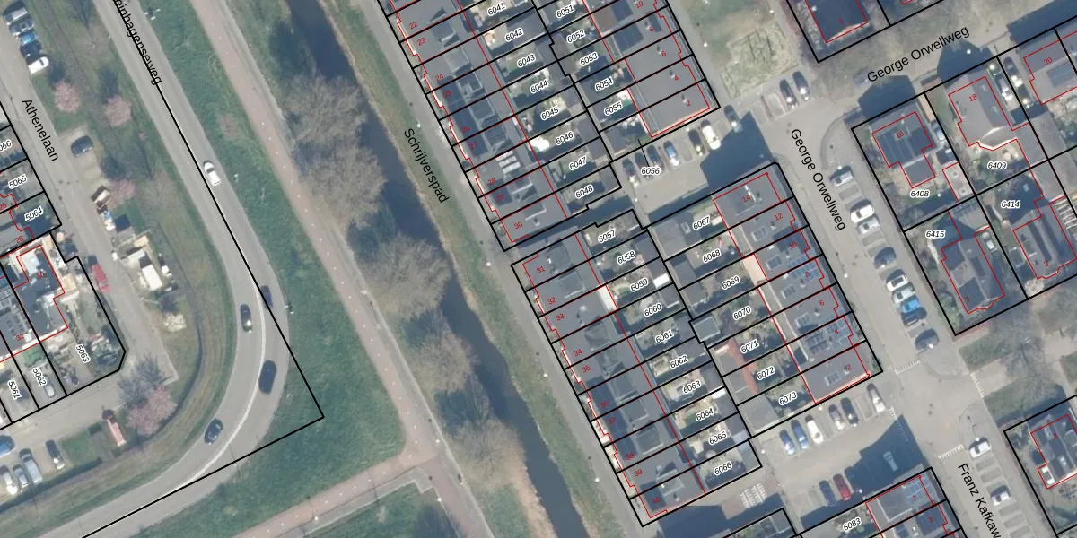 Schrijverspad 31 is gelegen op kadastraal perceel WDN01A6057. Deze kadastrale aanduiding is uniek en wordt gebruikt door het Kadaster om eigendomsrechten en andere zakelijke rechten vast te leggen. Het perceel maakt onderdeel uit van de kadastrale gemeente Woerden.