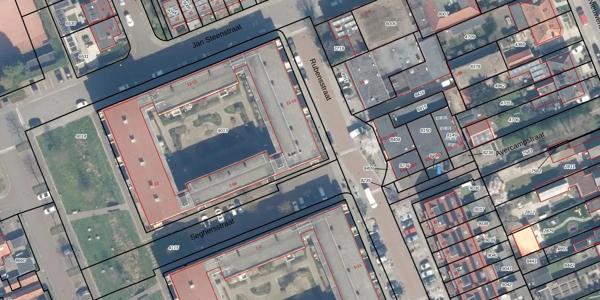 Seghersstraat 20 is gelegen op kadastraal perceel WDN01B9013. Deze kadastrale aanduiding is uniek en wordt gebruikt door het Kadaster om eigendomsrechten en andere zakelijke rechten vast te leggen. Het perceel maakt onderdeel uit van de kadastrale gemeente Woerden.