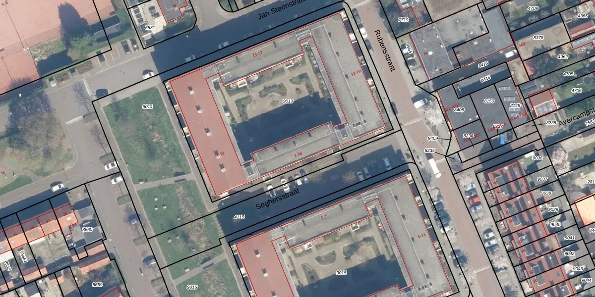 Seghersstraat 30 is gelegen op kadastraal perceel WDN01B9013. Deze kadastrale aanduiding is uniek en wordt gebruikt door het Kadaster om eigendomsrechten en andere zakelijke rechten vast te leggen. Het perceel maakt onderdeel uit van de kadastrale gemeente Woerden.