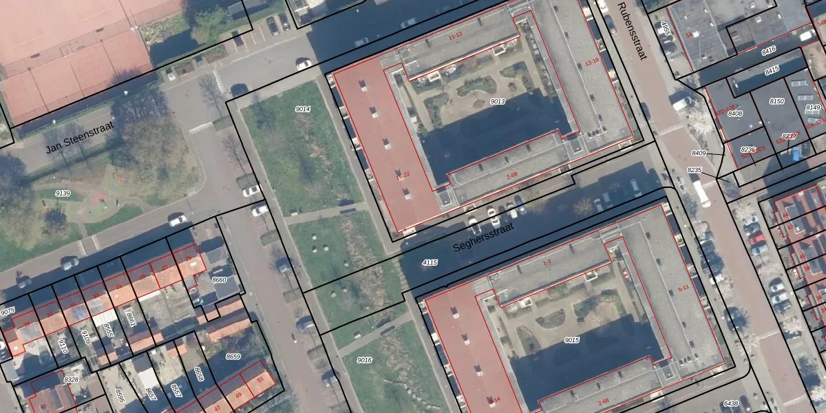 Seghersstraat 34 is gelegen op kadastraal perceel WDN01B9013. Deze kadastrale aanduiding is uniek en wordt gebruikt door het Kadaster om eigendomsrechten en andere zakelijke rechten vast te leggen. Het perceel maakt onderdeel uit van de kadastrale gemeente Woerden.
