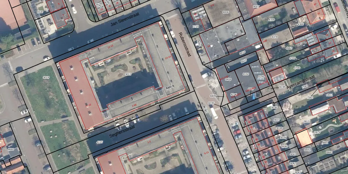 Seghersstraat 4 is gelegen op kadastraal perceel WDN01B9013. Deze kadastrale aanduiding is uniek en wordt gebruikt door het Kadaster om eigendomsrechten en andere zakelijke rechten vast te leggen. Het perceel maakt onderdeel uit van de kadastrale gemeente Woerden.