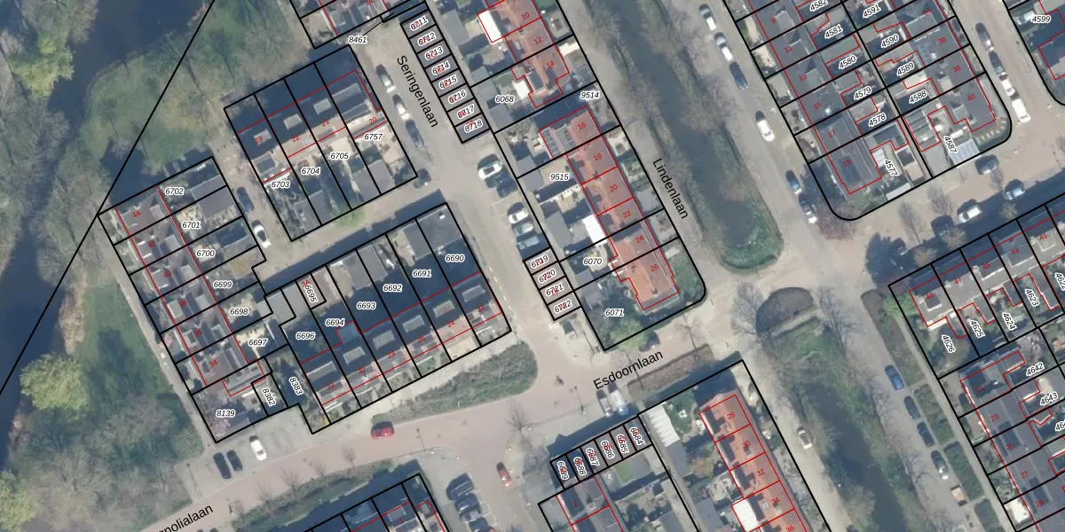 Gebruik de zoekbalk of klik op een perceel voor informatie over de adressen binnen dit perceel.
