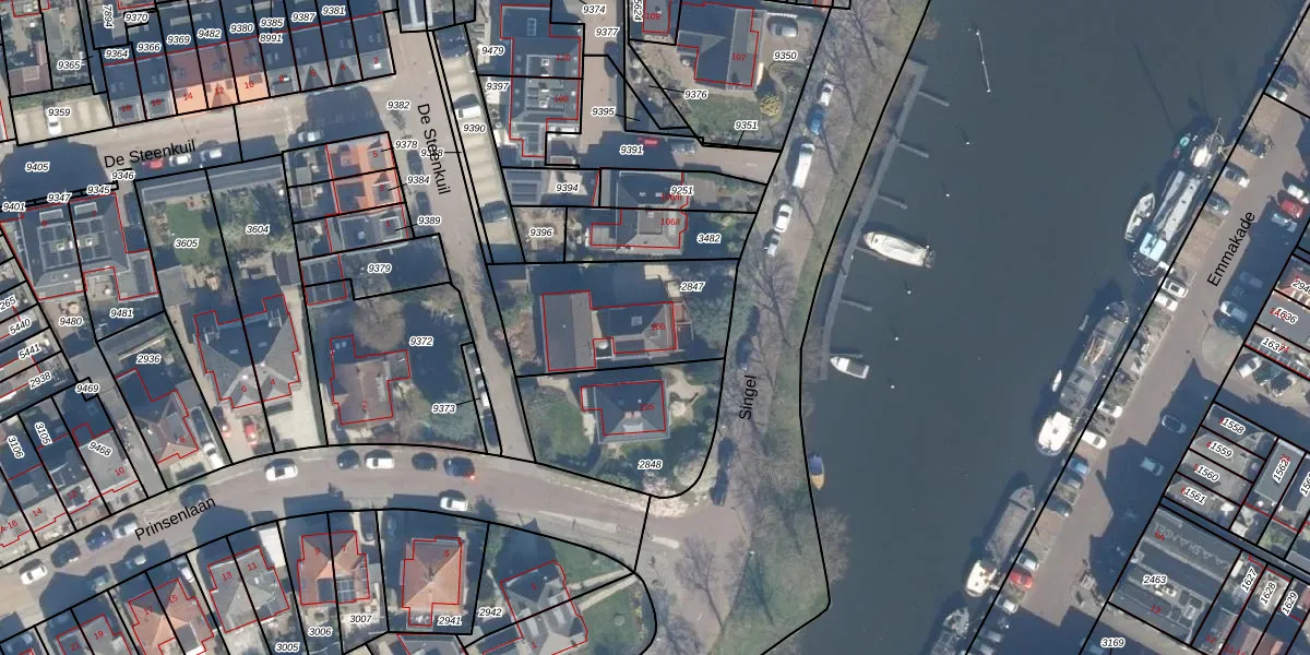 Het perceel waarop Singel 106 staat heeft een oppervlakte van 575 m². Dit is een groot perceel. De perceeloppervlakte wordt geregistreerd door het Kadaster. Gedetailleerde informatie over de maten van dit perceel kunt u vinden in het rapport Kadastrale kaart met maatvoering van Singel 106.