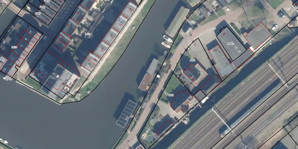 Het perceel waarop Singel 43-H staat heeft een oppervlakte van 7,9 ha. Dit is een zeer groot perceel. De perceeloppervlakte wordt geregistreerd door het Kadaster. Gedetailleerde informatie over de maten van dit perceel kunt u vinden in het rapport Kadastrale kaart met maatvoering van Singel 43-H.