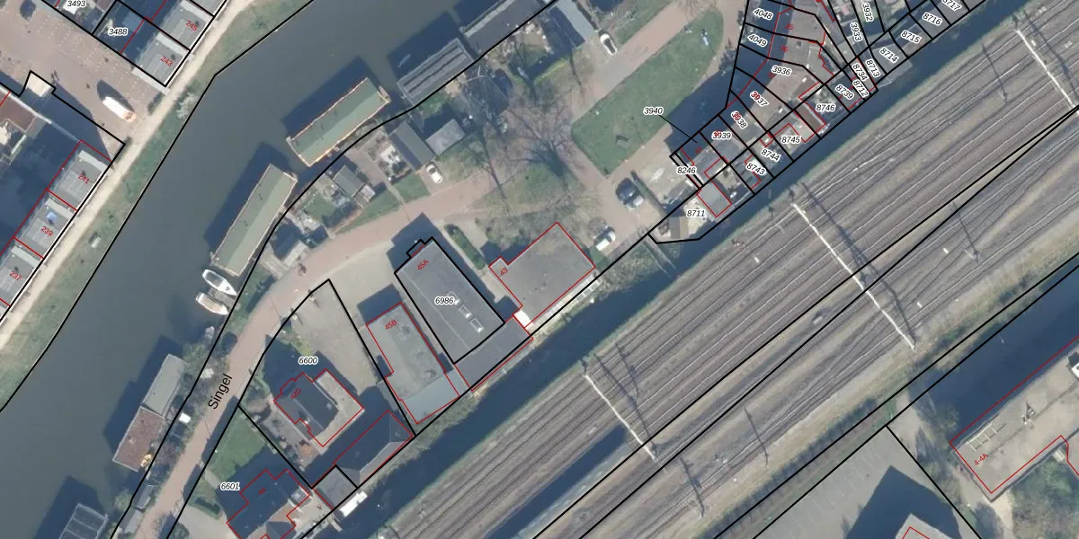 Het perceel waarop Singel 43 staat heeft een oppervlakte van 1,0 ha. Dit is een zeer groot perceel. De perceeloppervlakte wordt geregistreerd door het Kadaster. Gedetailleerde informatie over de maten van dit perceel kunt u vinden in het rapport Kadastrale kaart met maatvoering van Singel 43.