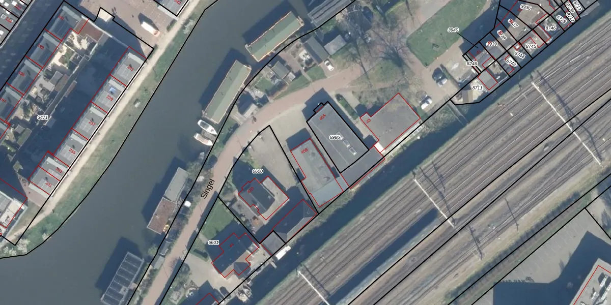 Het perceel waarop Singel 45-B staat heeft een oppervlakte van 1,0 ha. Dit is een zeer groot perceel. De perceeloppervlakte wordt geregistreerd door het Kadaster. Gedetailleerde informatie over de maten van dit perceel kunt u vinden in het rapport Kadastrale kaart met maatvoering van Singel 45-B.