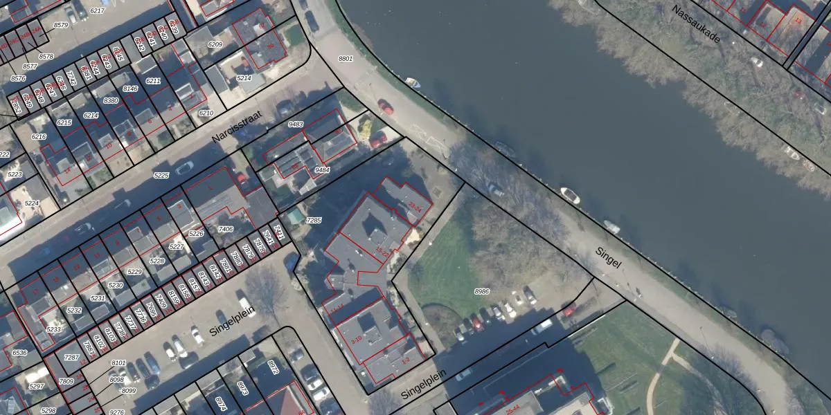 Het perceel waarop Singelplein 23 staat heeft een oppervlakte van 1378 m². Dit is een zeer groot perceel. De perceeloppervlakte wordt geregistreerd door het Kadaster. Gedetailleerde informatie over de maten van dit perceel kunt u vinden in het rapport Kadastrale kaart met maatvoering van Singelplein 23.