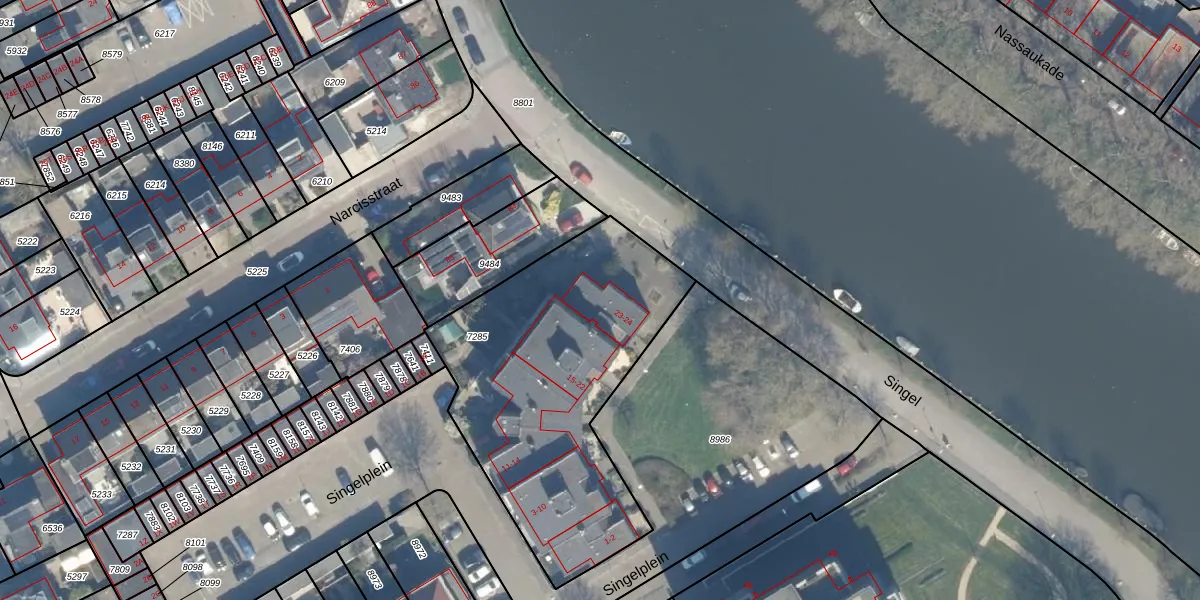Het perceel waarop Singelplein 24 staat heeft een oppervlakte van 1378 m². Dit is een zeer groot perceel. De perceeloppervlakte wordt geregistreerd door het Kadaster. Gedetailleerde informatie over de maten van dit perceel kunt u vinden in het rapport Kadastrale kaart met maatvoering van Singelplein 24.