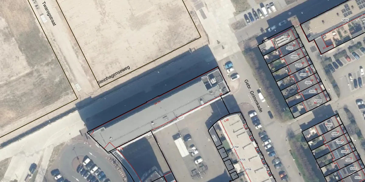 Het perceel waarop Steinhagenseweg 2-L staat heeft een oppervlakte van 2375 m². Dit is een zeer groot perceel. De perceeloppervlakte wordt geregistreerd door het Kadaster. Gedetailleerde informatie over de maten van dit perceel kunt u vinden in het rapport Kadastrale kaart met maatvoering van Steinhagenseweg 2-L.