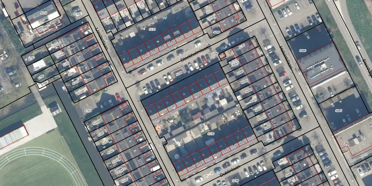 Stockholmlaan 9 is gelegen op kadastraal perceel WDN01A5136. Deze kadastrale aanduiding is uniek en wordt gebruikt door het Kadaster om eigendomsrechten en andere zakelijke rechten vast te leggen. Het perceel maakt onderdeel uit van de kadastrale gemeente Woerden.